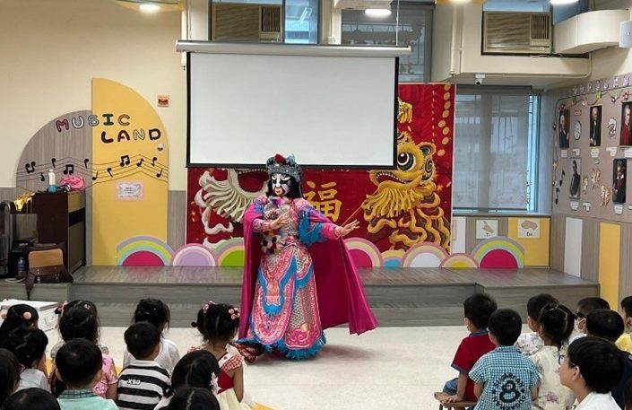 2. 著名變臉師韋飛雄到校進行變臉表演,讓幼兒透過欣賞「川劇變臉」國粹表演,知道「川劇變臉」是中國傳統文化之一,參與其活動培養對傳統文化藝術的興趣。