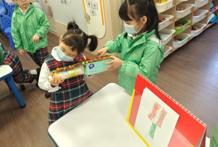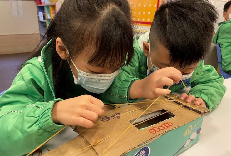 「線」還可以做些甚麼?就讓小朋友們發揮小小的創意吧!小朋友一起利用「線」來製作球拍和樂器,整個過程都很興奮,充滿探索性。小朋友還發現原來選用不同粗幼、長短、質料的「線」可以做出不同的物品,呈現不同的效果!