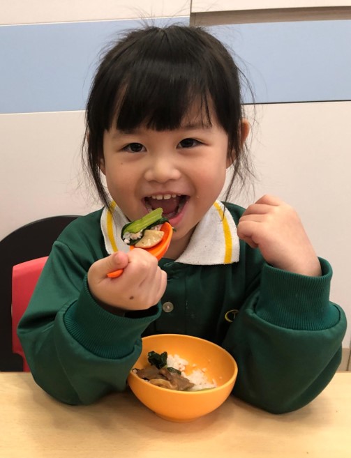 校內設有廚房,每天由廚師為幼兒烹調不同菜式,配以少甜、少鹽、少油,讓幼兒食得開心、食得更健康!
