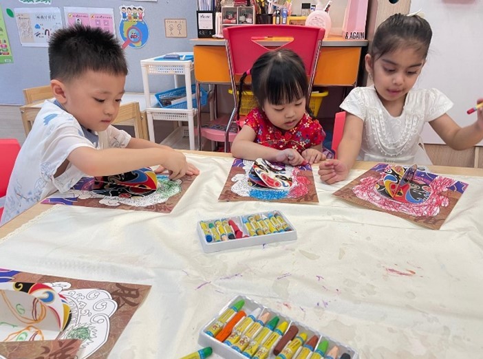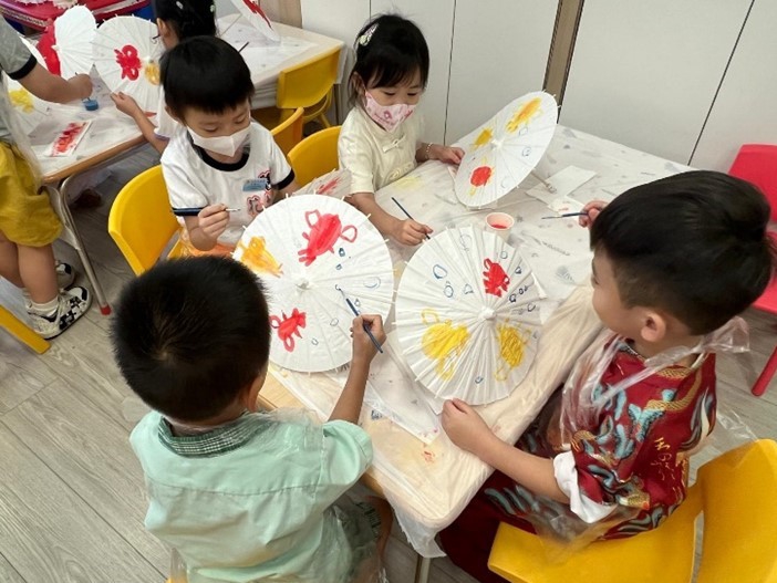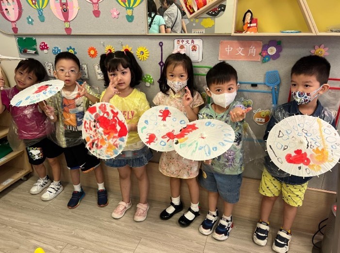 1. 各級參與中國傳統藝術活動(幼班-中國臉譜、低班-傘面水墨畫、高班-彩虹書法),讓幼兒可以透過欣賞和創作,認識中國傳統藝術,培養對中華文化的興趣和熱愛。