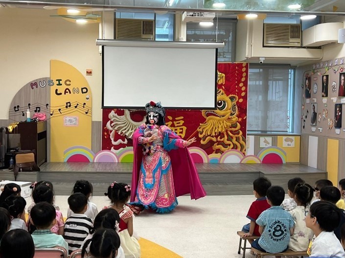2. 著名變臉師韋飛雄到校進行變臉表演,讓幼兒透過欣賞「川劇變臉」國粹表演,知道「川劇變臉」是中國傳統文化之一,參與其活動培養對傳統文化藝術的興趣。