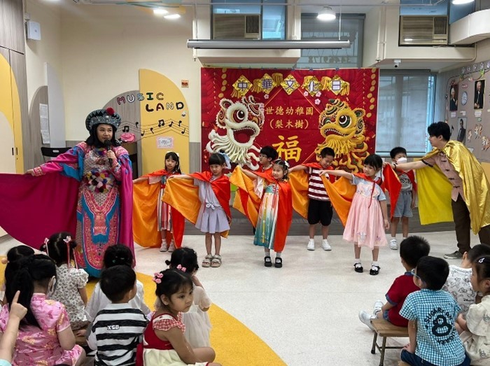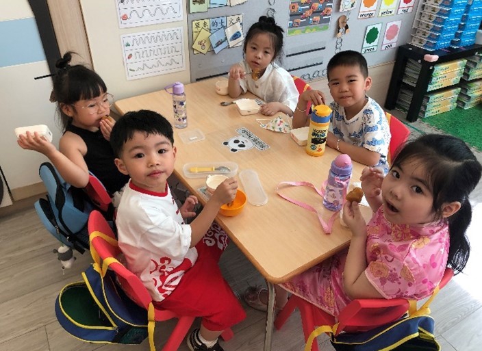 4. 活動當天,幼兒穿着華服回校,又在茶點時間透過試食懷舊小食砵仔糕,從而認識欣賞中國的美物,對中國飲食文化產生好奇和興趣。