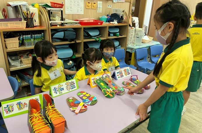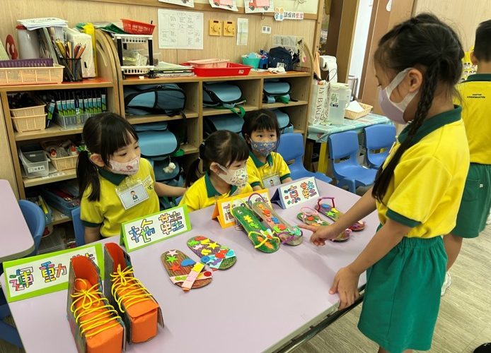 想做一對合穿的鞋子,該怎樣做?原來首先要量一量自己的腳有多大,小朋友們除了向他人介紹不同鞋子的特性外,還舉行了(Catwalk Show),展示不同的鞋子呢!